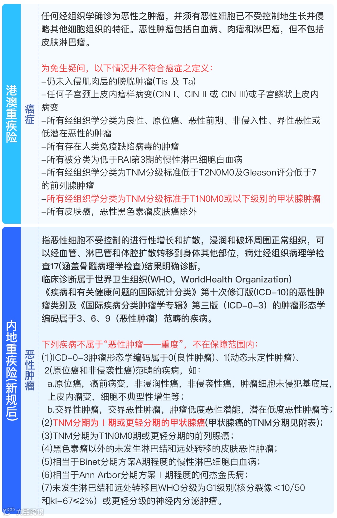 港澳“癌症”定义不需要扩散到身体其他部位,明显较内地扩散转移到身体其他部位更为宽泛。