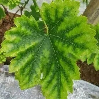 镁在植物体内移动性较强,缺镁症状首先表现在老叶上,如果不能及时补充镁则会逐渐发展到新叶上。缺镁时,叶片脉间失绿,叶脉仍为绿色,在叶片上形成清晰的网状脉纹,且一般在叶片边缘和尖端比较严重,而叶片基部仍能保持绿色。