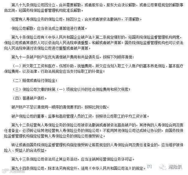对比大陆和香港对于保险公司破产的法律规定香港的是这样的:香港保险监管规定若保险公司被清盘,则长期业务须转让给另一保险公司或因此事待成立的保险公司;