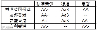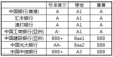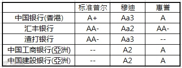 香港地区几大银行长期信用评级结果