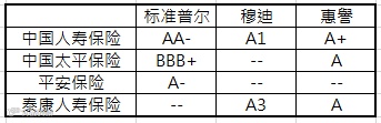 中国內地几大人寿保险公司长期信用评级结果