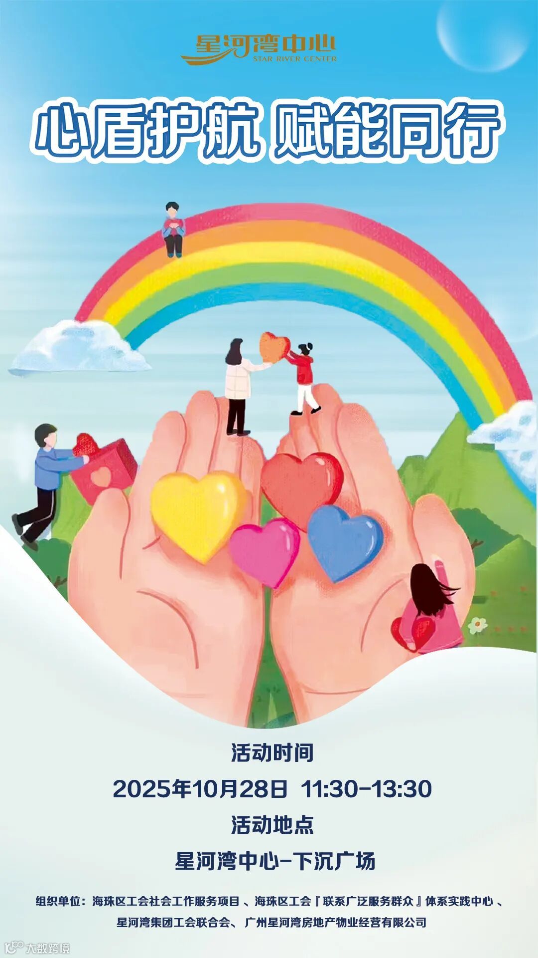 快节奏的工作生活中,人们常常面临着工作压力、身心疲惫等问题。响应需求,体现关怀与支持,星河湾中心联合海珠区工会社会工作服务项目、海珠区工会联系广泛服务群众体系实践中心共同策划开展“心盾护航赋能同行”为主题的身心关爱活动,精心设计了一系列丰富多样的环节,让大家在轻松愉悦的氛围中释放压力。