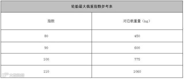 『备注:鉴于篇幅限制,没有展示全部的载重指数,请谅解』