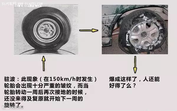 会导致什么后果?在这种状态下,驻波的这部分花纹受到剧烈的摩擦而急剧升温,不久就引起胎面橡胶从内部胎体剥落,从而导致高速爆胎!从发生驻波现象到爆胎,开车的人不会有任何感觉和预兆。不像漏个气,方向跑偏什么的,这是高速上独有的致命的现象,而事故后人们都只是简单的归纳说是爆胎。