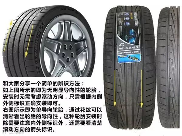分不同的情况,有些轮胎是没有导向性的,这种轮胎的花纹可以对称也可以不对称,市面上大多数普通轮胎都是这种类型。还有一些是单导向性轮胎,常见的如固特异NCT5等。对于以经济、舒适为目标的轮胎多数确实没有运动方向的限制,对于这种轮胎怎么装都是可以的,但是在多数高档轮胎却有严格的方向限制。