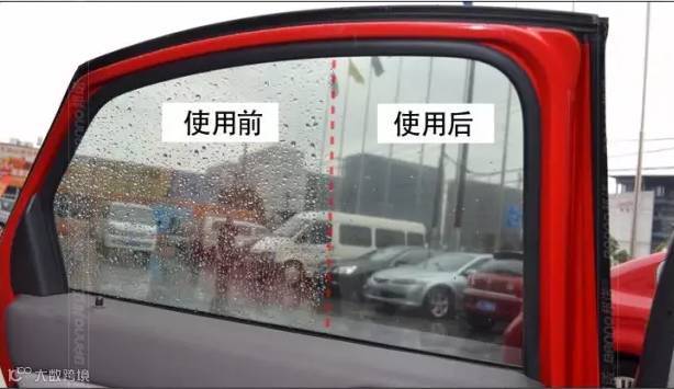购买市面上销售的驱水剂,驱水剂具有使后视镜表面不沾水的功效。从实际情况看,使用驱水剂后汽车玻璃上所沾的雨水显然变少了。