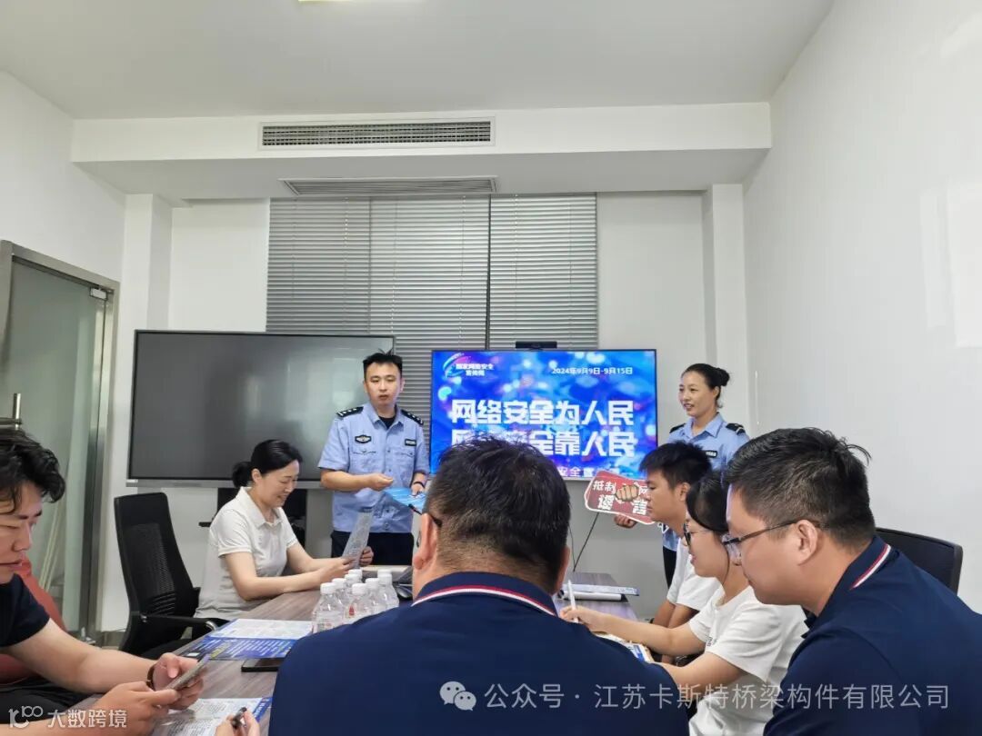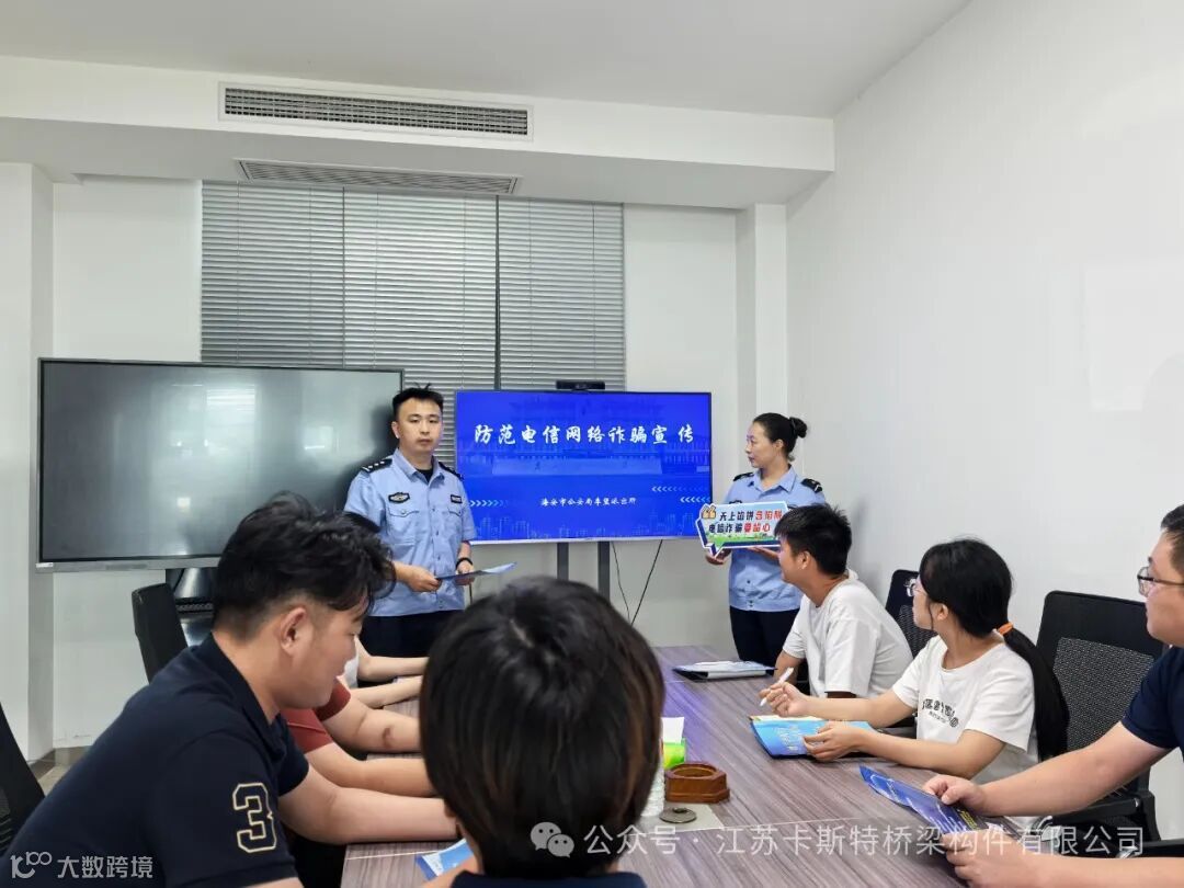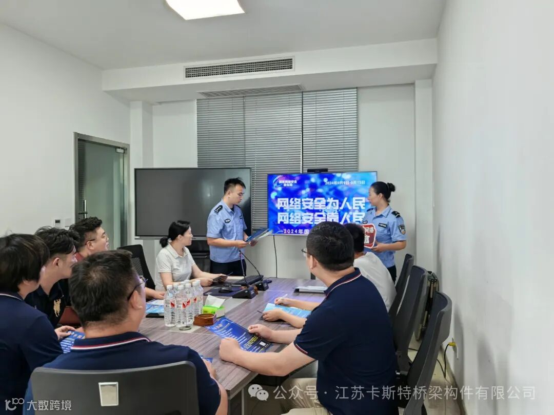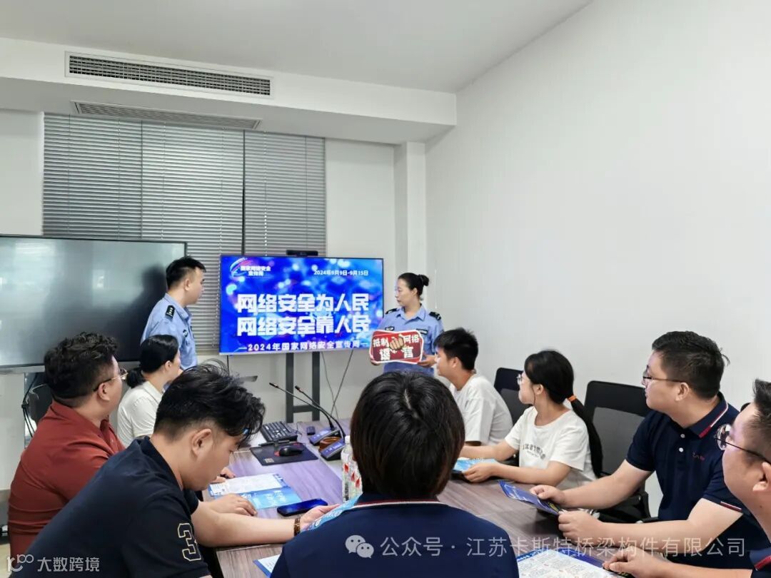在当今数字化的时代,网络安全已成为我们共同关注的重要议题。近日,海安市公安局李堡派出所的民辅警们走进了江苏卡斯特桥梁构件有限公司,开展了一场以 “网络安全为人民,网络安全靠人民” 为主题的打击谣言宣传活动。