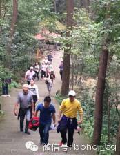 随着陈董号令的发出,各组人员瞬间你跨我越,个个踊跃向前,意气风发,朝着山顶目标迈进。也许是有的队员开始的节奏快了,走了十多分钟,就在旁边的石凳上开始大口喘气。作为最后出发的陈世良董事长和陈代林副总,对在登山途中落单、坐地休息的人一次又一次的进行鼓励和帮助,使大家能够跟上前面的队伍。各组的队长也纷纷发挥着团队领导作用,对体能较弱的同事帮搀拉扶,不至于掉队。