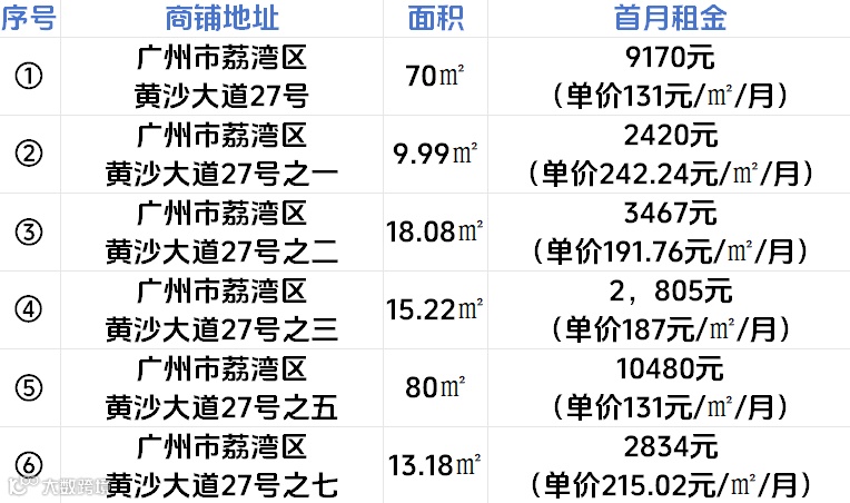以下图片依次为商铺①~商铺⑥