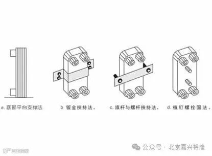 其次板式换热器(空调板换)的固定方法,安装如图: