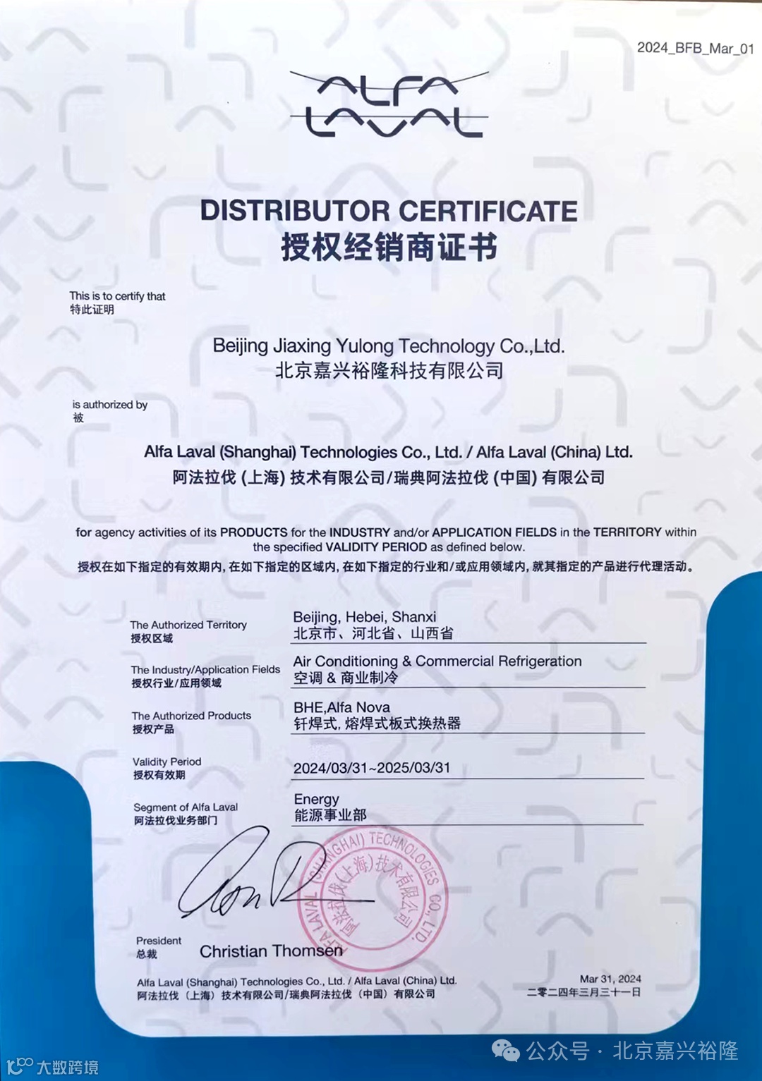 北京嘉兴裕隆科技有限公司和广州嘉欣裕隆贸易有限公司主要从事电子膨胀阀、空调膨胀阀、四通换向阀、日立空调压缩机、阿法拉伐换热器等核心制冷设备的代理、销售业务,是日本鹭宫、阿法拉伐、广州日立等多家西方制冷配套品牌产品的中国区代理商,已代理进口制冷配件20余年。我们坚信:以公司的良好信誉及高素质的服务团队为基础,以勤奋、务实的工作作风为出发点,努力进取,持续发展,与支持和信赖我们的朋友精诚合作,共同发展。