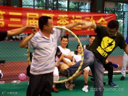 2016年6月19日,重庆博海商贸有限公司第三届夏季运动会在华岩恒大雅圆运动中心拉开帷幕,本运动会主要开展了团队拔河比赛、连体呼啦圈传递接力、花样接力赛、篮球赛项目,各位同事在此次活动中积极参与,勇于表现,充分发挥自我优势,齐心协力,极大的展现了团队间相关协作,共同拼搏的优良品质。