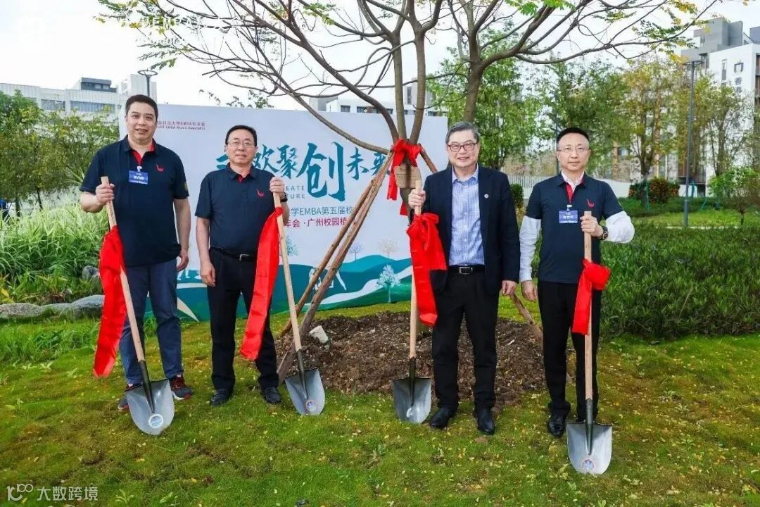 植树嘉宾(由左至右):校友会常务副主席熊伟国、港科大(广州)校长倪明选教授、港科大商学院院长谭嘉因教授、校友会主席曹志伟