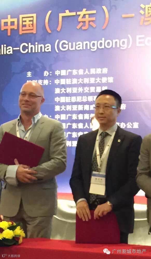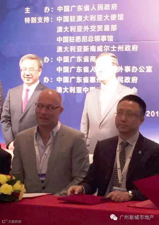 2015年5月25日,中共中央政治局委员、广东省省委胡春华书记率团出席中国(广东)-澳大利亚经贸合作交流会。新城市投资控股集团作为成功海外投资的广东企业代表参加此次交流活动,同时新城市·澳洲100项目作为27个经济类项目之一在胡春华书记和澳大利亚新南威尔士州州长迈克·贝尔德的见证下现场签约。引发中国行政审批制度改革的《万里审批图》作者—广州市政协常委、新城市投资控股集团创办人曹志伟先生作为签约代表出席了交流活动,新城市(澳洲)发展集团董事总经理曹志新和董事秦一文随行参加本次活动并与参会澳洲企业展开深入商务交流。