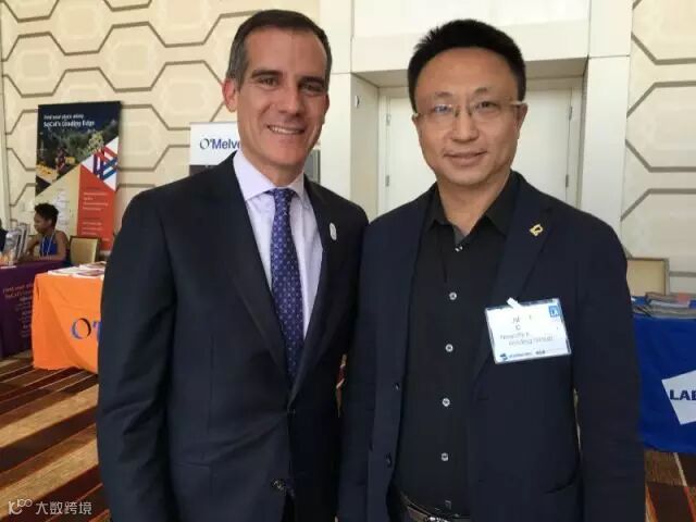 与洛杉矶市长Eric Garcetti合影