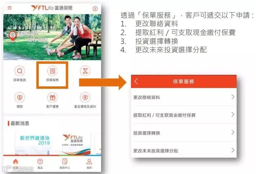 为了更好地服务客户,富通(FTLife)上线了手机APP"富通在线”,投保人可以在线管理自己的富通保险保单。