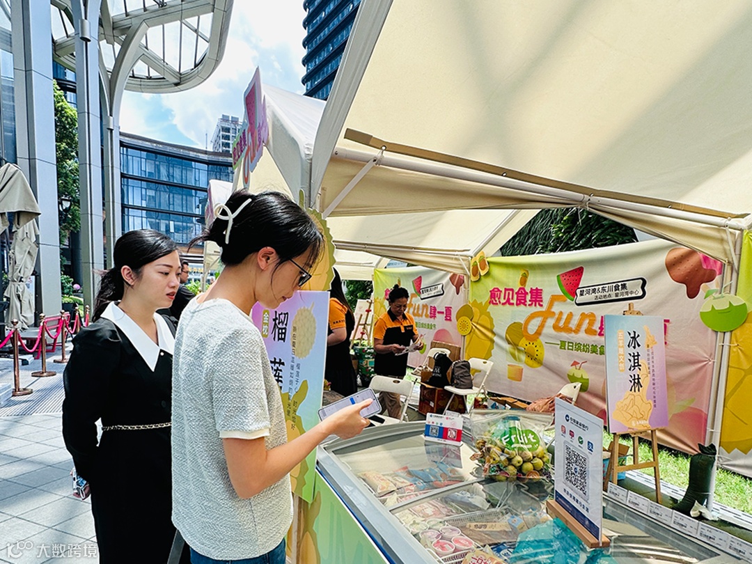 缤纷美食节市集如同一阵清爽的夏风,不经意间便为人们治愈了燥热。上百种消暑美食将各个摊位装点得琳琅满目、令人垂涎。菠萝味汽水、爆汁西瓜、甜蜜雪糕等美食持续调动起人们的消费热情。现场门庭若市,工作人员一边引导访客选购,一边补货上新,在一派和谐且热闹的绘卷中,构成了星河湾中心独一无二的夏日风景。