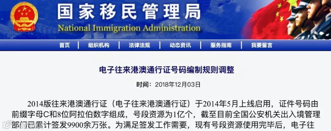 如果您是第一次使用电子港澳通行证,请注意:从2019年1月1日起,电子往来港澳通行证号码进行调整,不再是原来的C+8位数字了!