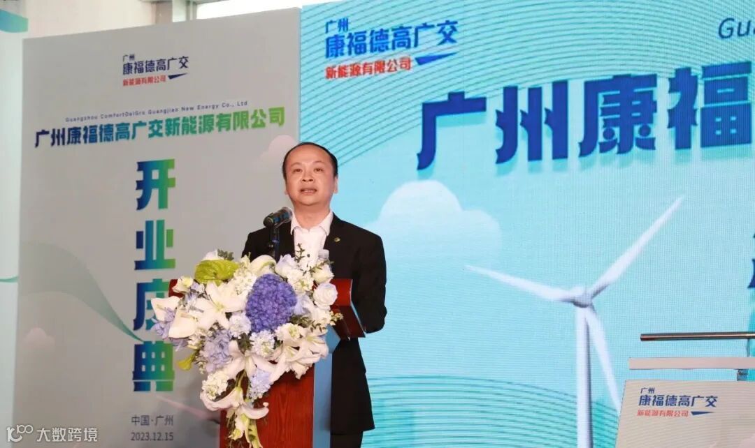 公交集团副总经理林殿盛先生表示,广州公交集团一直积极响应国家对于新能源发展的战略部署,致力于推动绿色低碳环保、高效、可持续的出行解决方案,旗下统筹大湾区近12000辆纯电动公交车、超10000辆新能源出租车的充电业务,自主研发的“如约充电”平台在大湾区已覆盖超390个充电站,超7700支充电桩,总功率85万千瓦时,年用电量达6亿度。此次携手康福德高集团合资成立康广新能源公司,旨在充分发挥合营各方在新能源产业链和国内外市场拓展的优势,将康广新能源公司打造成为具有本土竞争力和海外开拓能力的生力军,推动绿色清洁能源从大湾区到世界各地的广泛应用,为全球客户提供清洁、高效、可持续的新能源解决方案,参与推动全球能源体系的绿色转型。