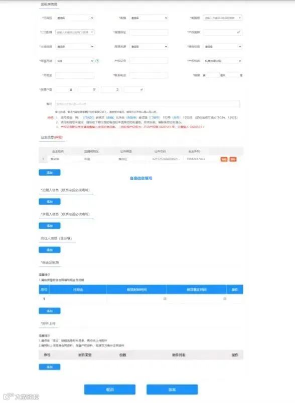 (2)土地性质和租赁用途如果在房源登记时没有选择则需要补充选择;
