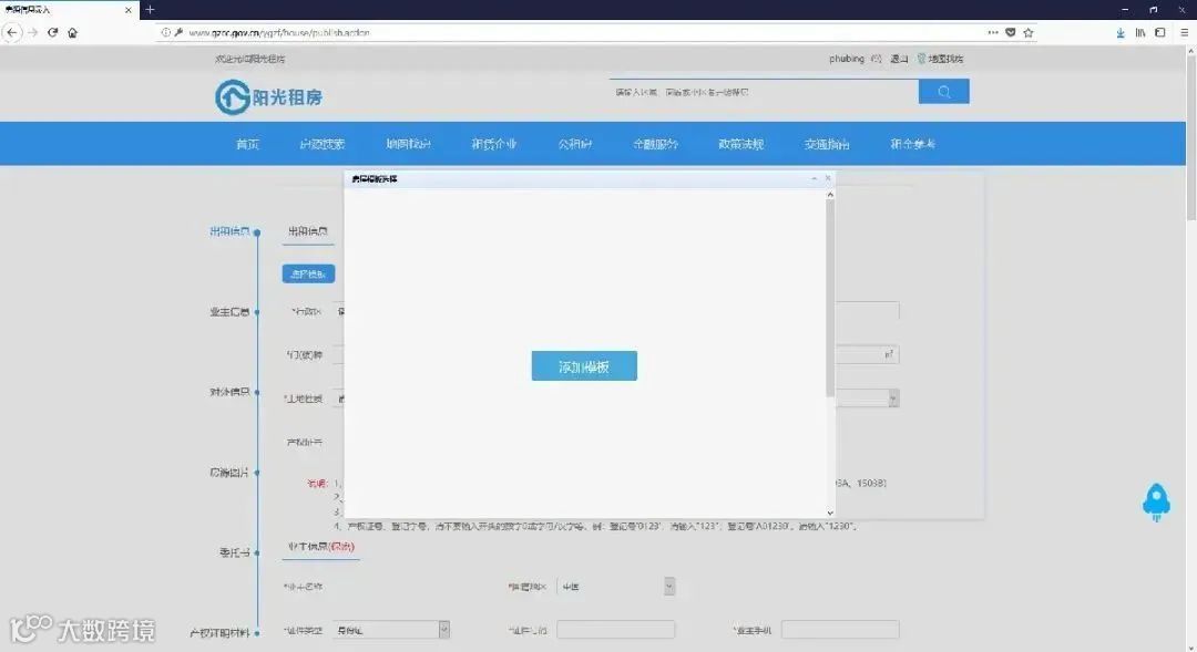 2、新建模板如果没有房源模板,可以点击 “选择模板”—— ”添加模板”按钮,进入房源模板信息填写页面。
