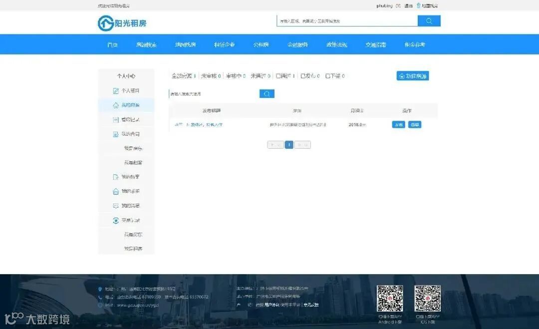 (一)登录后,系统自动跳转个人中心,点击“新建房源”按钮即可跳转房源登记页面;