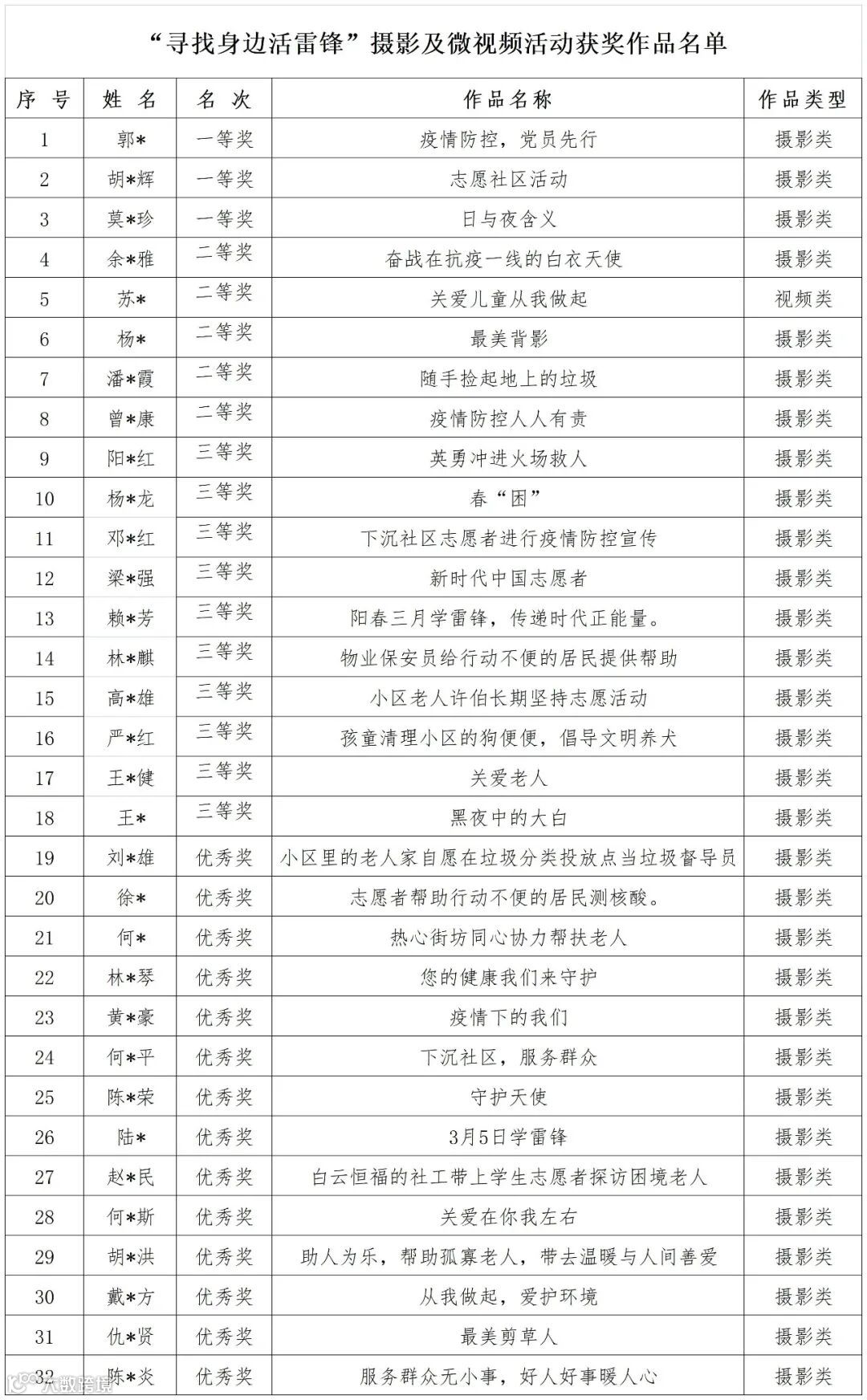 获奖名单如下: