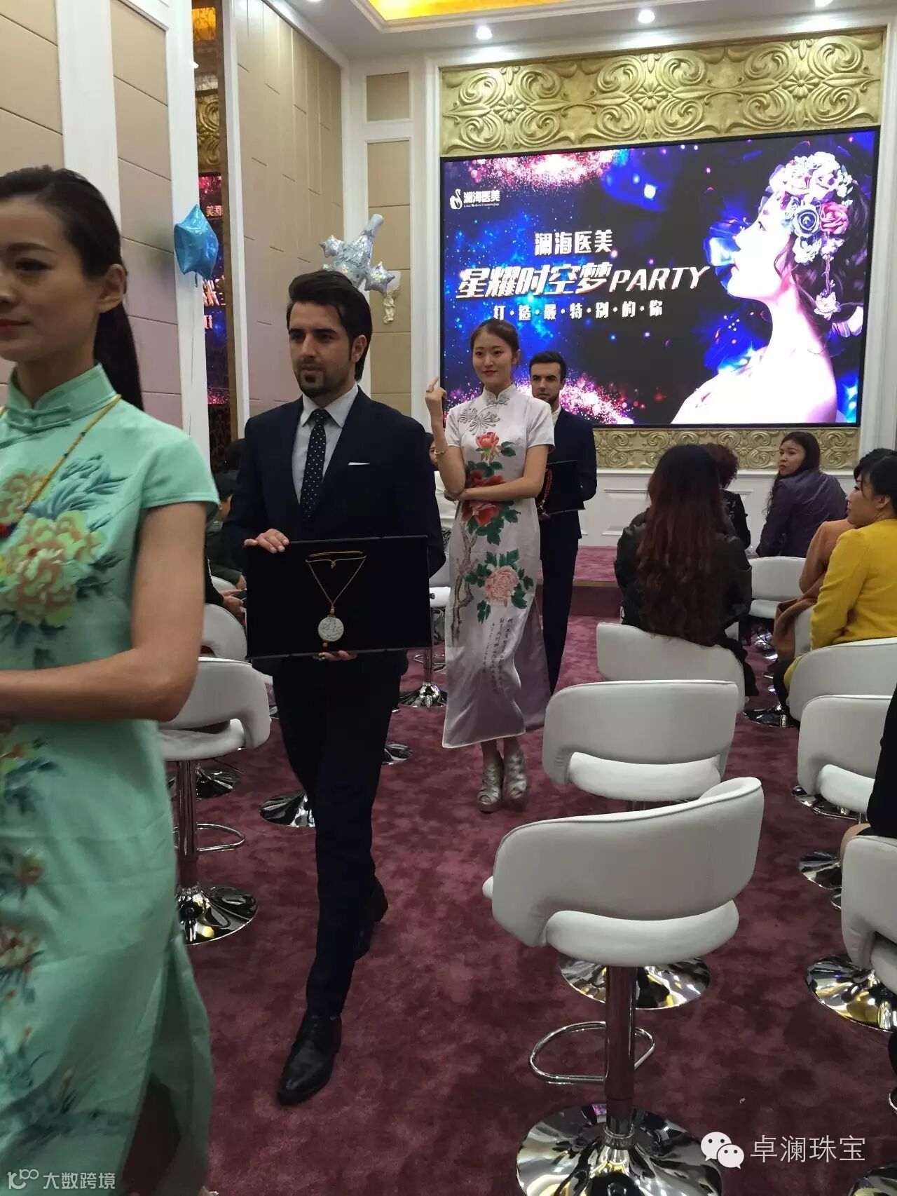 卓澜珠宝旗袍秀,是卓澜珠宝跨界整合营销系统的10个模块中被卓澜代理商挑中演绎最多的一个模块,全国各地几百场卓澜珠宝秀,各有各的风情,在青岛,澜海医美也是第三场演绎了。女人因珠宝更动人,珠宝因女人更璀璨!珠宝与旗袍的结合更是衬托出女人的高贵和优雅。外籍男模的登场更赢足了来宾的眼球。