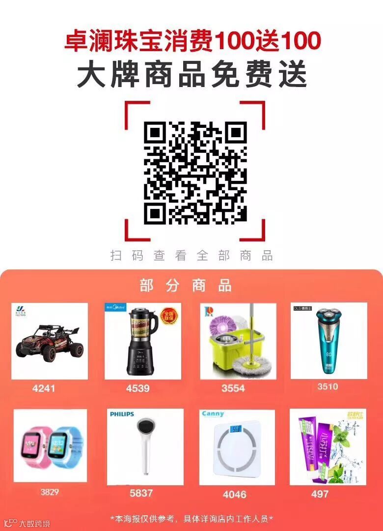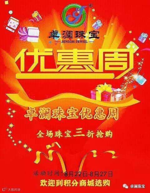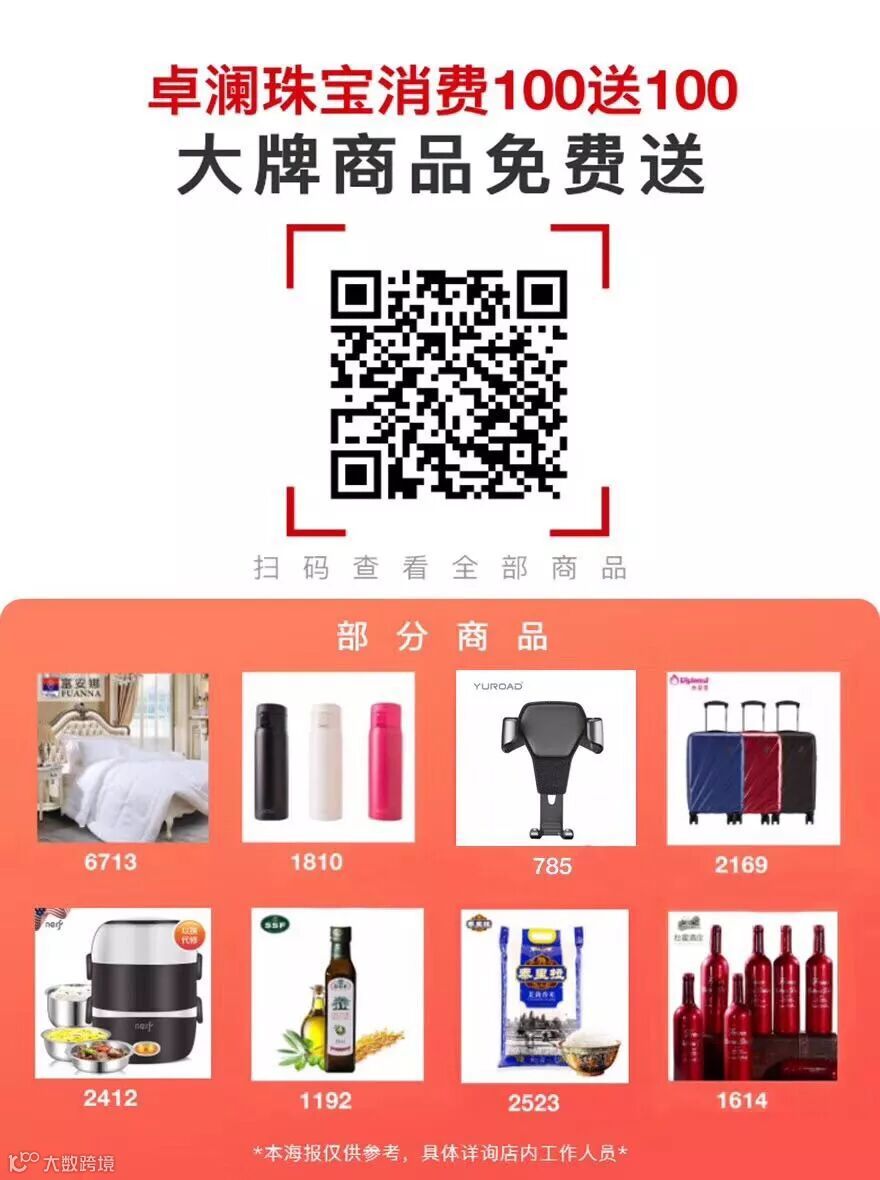 本周卓澜珠宝(全场3折+买100送100)大牌商品免费送