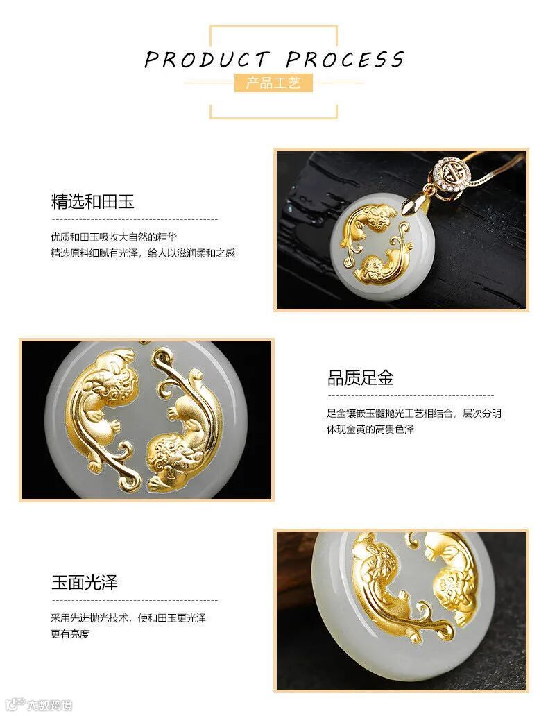 每一份卓澜珠宝的金镶玉都配有国家官方鉴定机构出具的“足金吊坠”鉴定证书,24K千足金,不同于某宝上看似金镶玉,因金含量都不足,检测和田玉而不测金,实则“金箔玉”