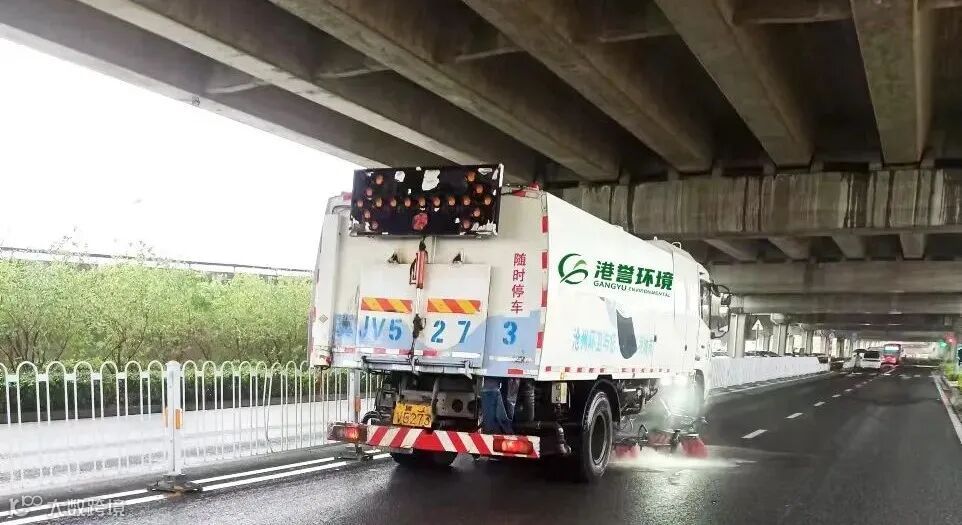 ,完成路面垃圾、树枝、落叶、淤泥、积水的清扫作业,确保道路干净整洁;出动扫路车、路面养护车、道路污染清除车,通过人机结合,分工协作,开展主次干道排水清淤作业,对城区主要道路进行快速清理,确保道路畅通。此外港誉环境借助科技赋能,利用智慧环卫系统,雨中随时关注重点积水点位变化,第一