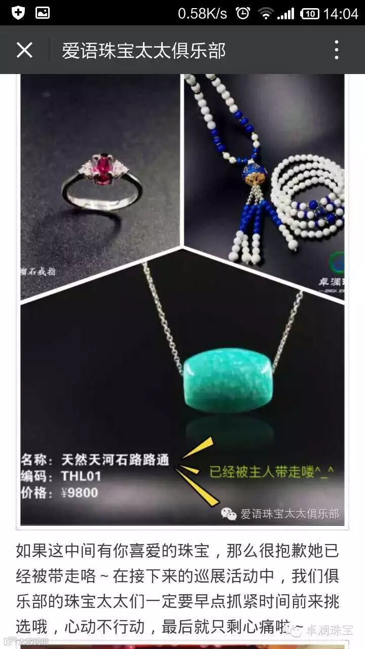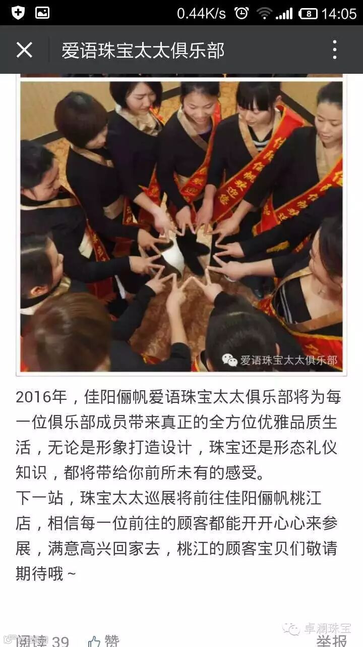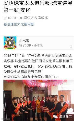 2016年1月18号,卓澜珠宝湖南加盟商—爱语太太俱乐部,在湖南安化举办首届爱语珠宝巡展。几十种品类、千款原创设计的卓澜珠宝被爱美的客户收入囊中。在卓澜珠宝的专业带领下,坚信湖南的加盟商2016更上一层楼。