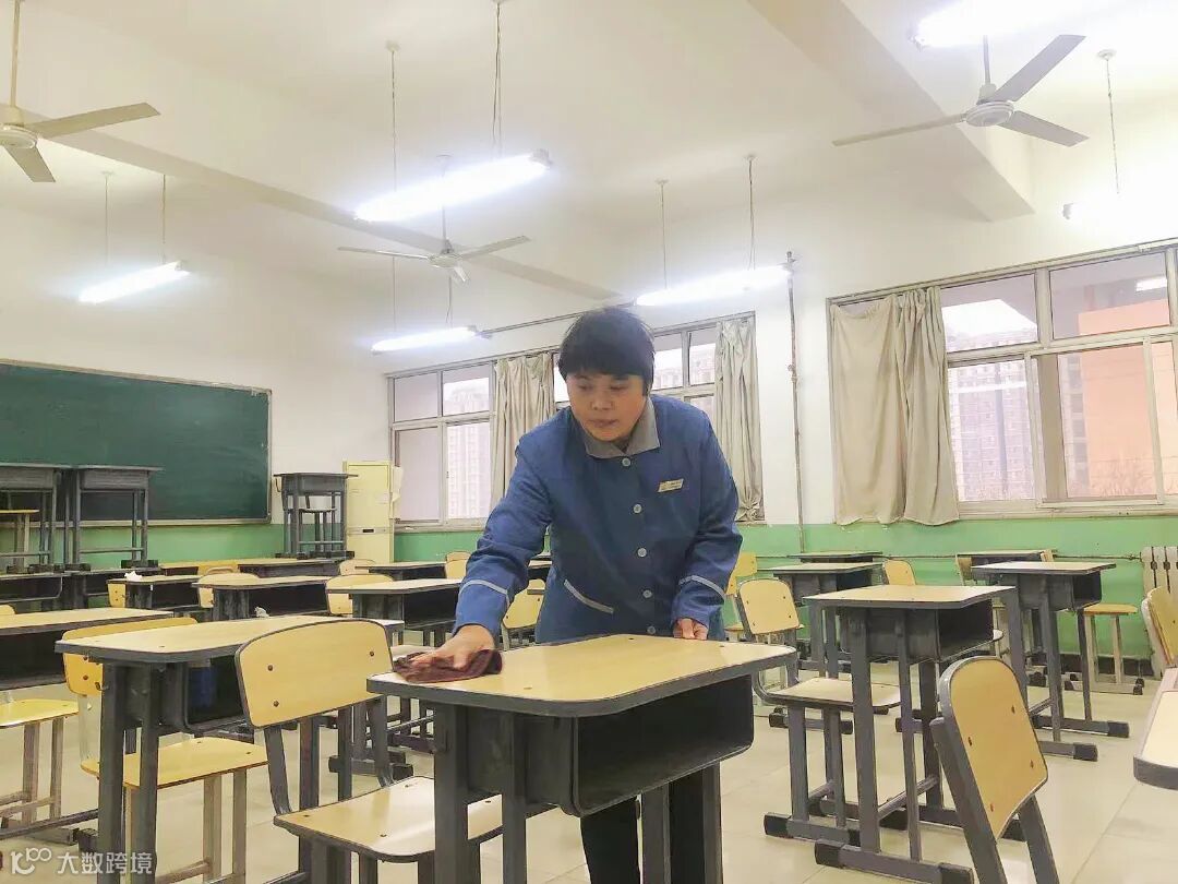 冬日里的天气格外冷,阳光也往往会姗姗来迟,但郭晓红依然会坚持每日按时抵达工作岗位。每当石家庄市第二中学的校园还沉浸在一片静谧之中,郭晓红就已经早早来到了公教楼,开始她一天的清洁工作。“同学们很早就来上课了,都很辛苦,我肯定要给他们提供一个良好的学习环境呀。”提到自己每天的工作,郭晓红露出了自豪的笑容。哪怕天气雷雨交加,过道泥泞湿滑;哪怕风吹扬沙,层层灰尘堆叠在走廊上,郭晓红都坚持并一丝不苟地完成清洁工作。