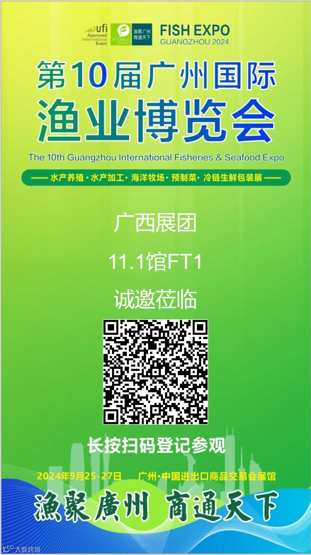 2024年9月25-27日,第10届广州国际渔博会将在广州中国进出口商品交易会展馆隆重举行。而广西,这个渔业大省,将再次组团惊艳亮相。