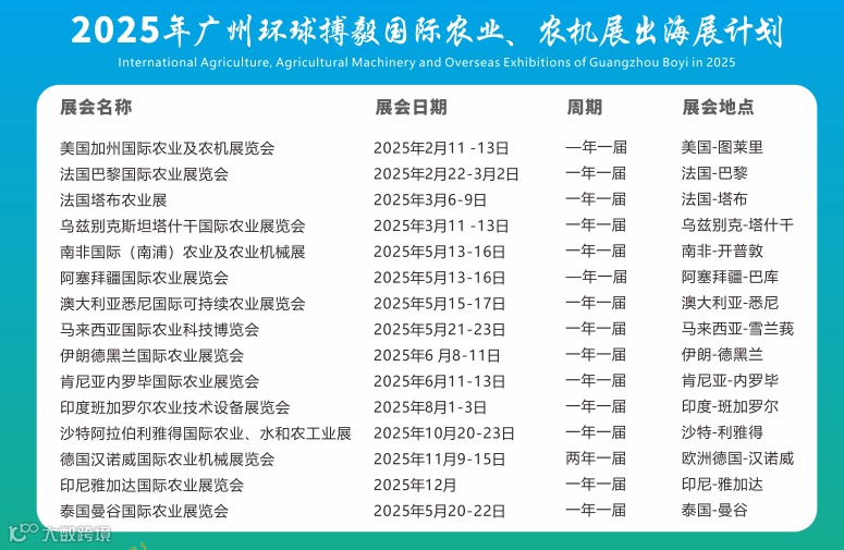泰国曼谷国际农业展览会展品范围包括农业机械、技术解决方案、智能农业技术、水资源管理、精准农业等,旨在提高农业生产力和食品系统的可持续性,2024年展会吸引了来自28个国家的300余家参展商,预计有来自62个国家的观众参与,成为亚洲农业机械和园艺创新的重要枢纽。