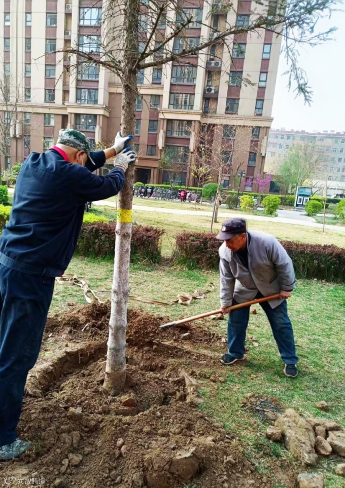 春灌浇水:春季气温逐渐回暖,植物水分蒸发量变大,在3月进行灌溉工作既有利于培养强大根系,也可以增强抗性。为确保苗木顺利返青,东胜物业根据地域、气候,以及植物的生长习性,制定了详细的春灌计划。