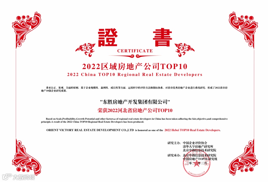 中国企业评价协会、清华大学房地产研究所、北京中指信息技术研究院颁发