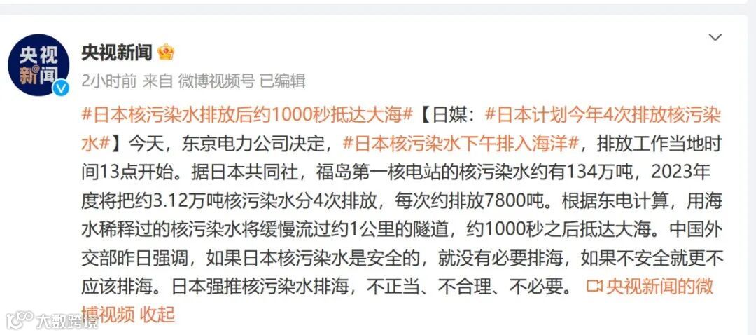 据央视新闻报道,当地时间8月24日13时,日本福岛第一核电站启动核污染水排海。