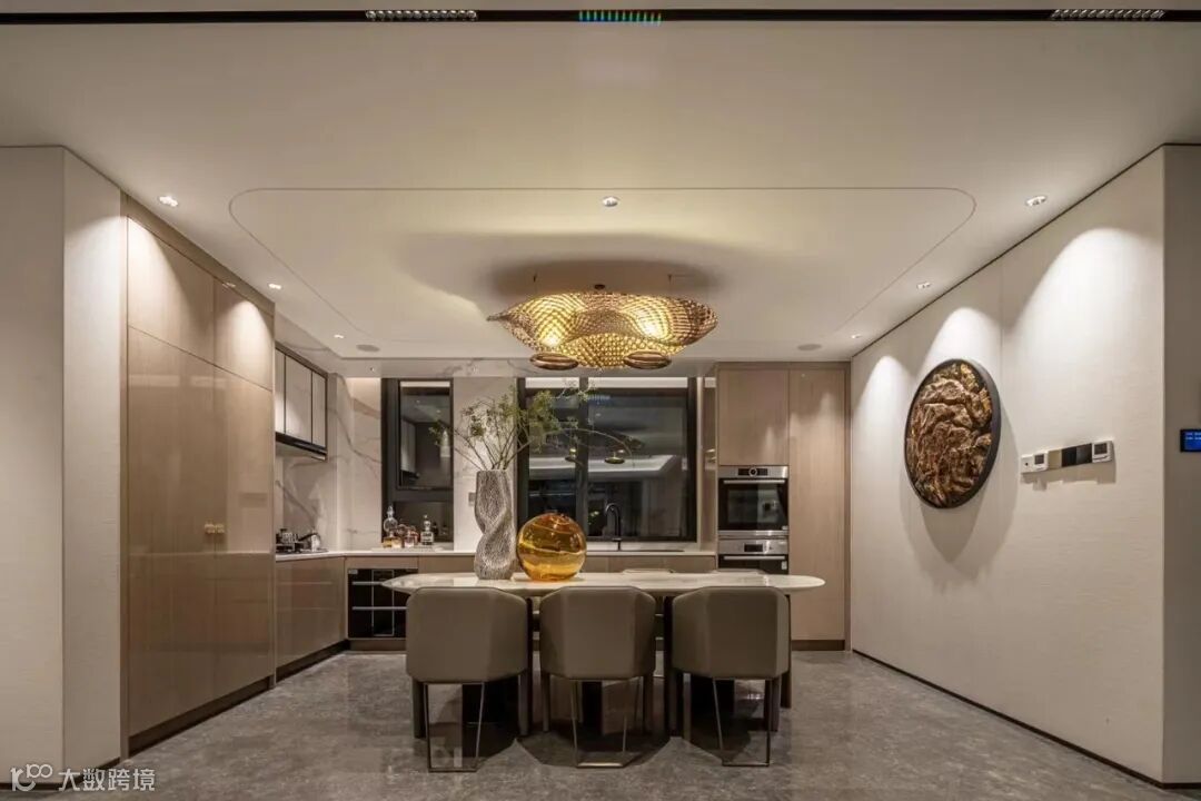 空间内3.3米层高,让室内延伸无限放大,艺术玄关,将收藏与展示、使用与品鉴融为一体。路过左侧光影映照的7米客厅,U型中西大厨房,明亮的自然光线,中西合璧的别样风情,开放式宽敞的厨房中岛……在自己的理想厨房里,美食和家的温暖触手可及。