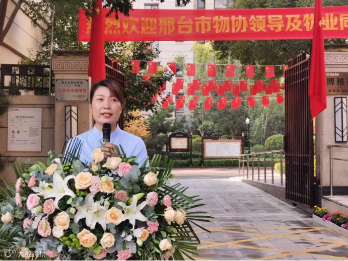 随后石家庄市东胜物业服务有限公司石家庄分公司总经理董旭文致欢迎辞,她向一直以来关心支持东胜物业发展的所有朋友们表示了谢意。她表示随着物业行业的不断发展,标准化智慧化必将是未来提供优质物业服务新的方向和目标,相信“诚实守信,开拓创新”的物业人必将同心协力,锐意进取,推陈出新,以崭新的姿态创造新的辉煌。