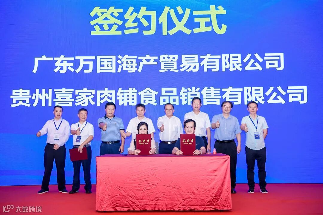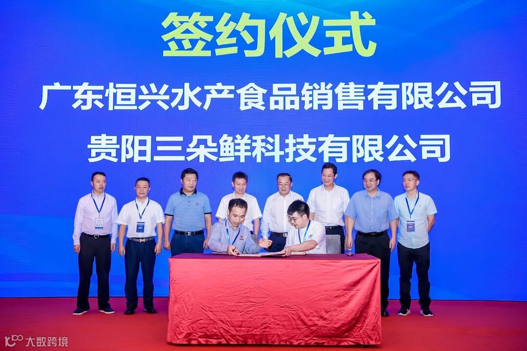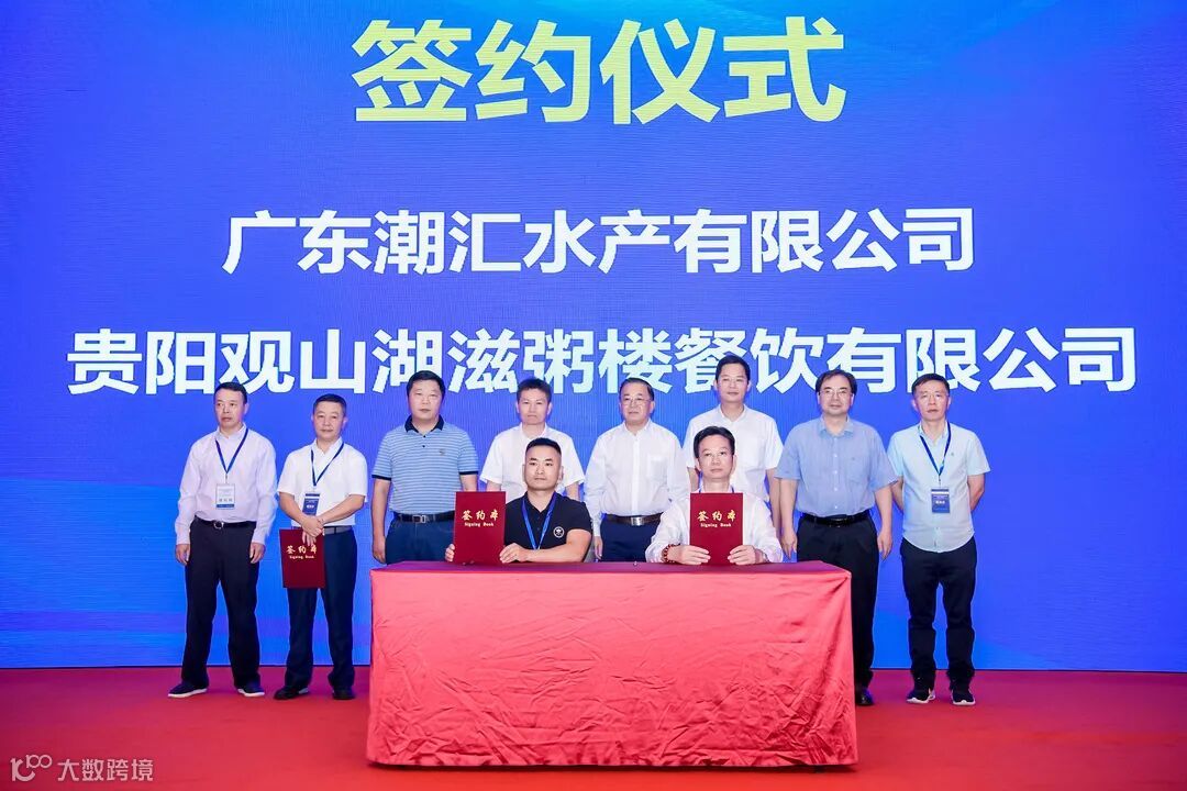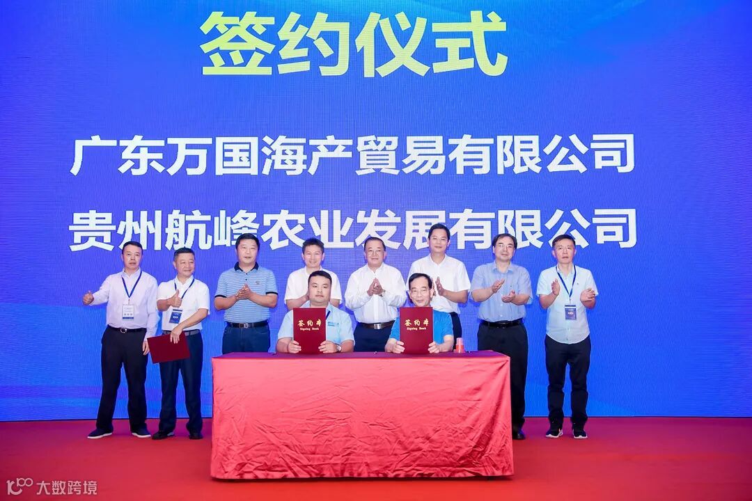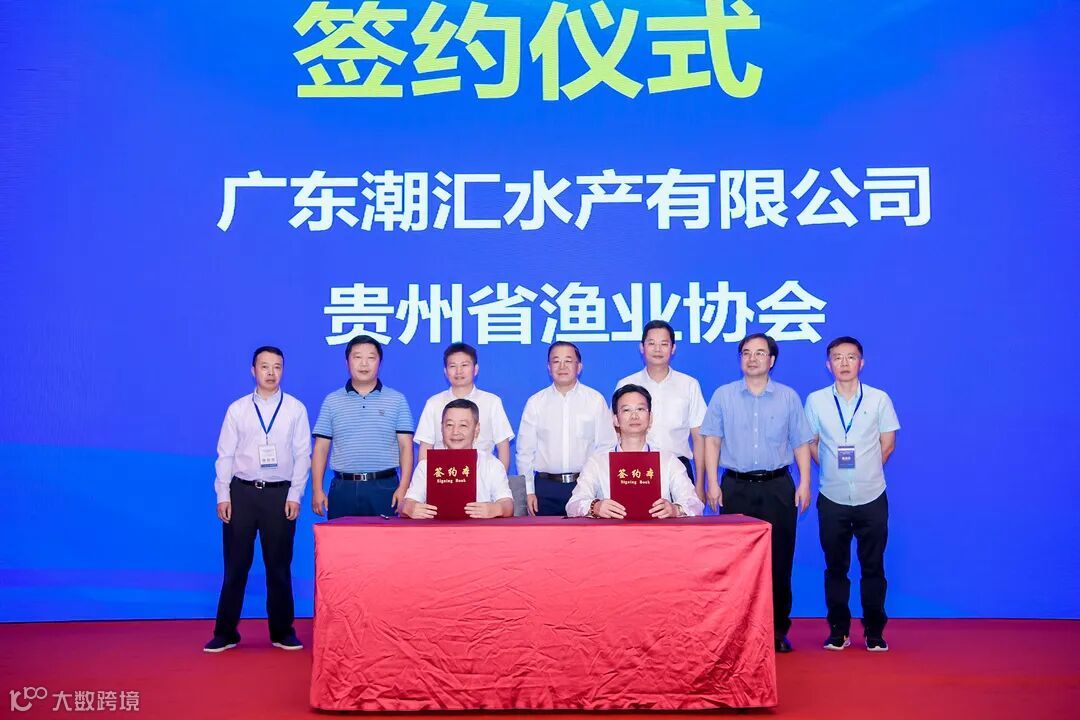 在推介会现场,举行了六组项目签约仪式,粤黔协作工作队党委书记/领队胡爱斌、广东省农业农村厅副厅长高庆营、国家虾蟹产业技术体系首席科学家/中山大学教授何建国、粤黔协作工作队党委副书记/副领队刘楚雄、中国水产科学研究院珠江水产研究所研究员谢骏、广东省农业农村厅渔业发展处副处长孙启勇等领导出席见证仪式。广东恒兴水产食品销售有限公司与贵阳三朵鲜科技有限公司签订合作意向书;广东潮汇水产有限公司分别与贵州省渔业协会、贵阳观山湖滋粥食品销售有限公司签订合作意向书;广东万国海产贸易有限公司,分别与贵州航峰农业发展有限公司、贵阳喜家肉铺食品销售有限公司签订合作意向书,共计可持续采购量达2.5亿元。