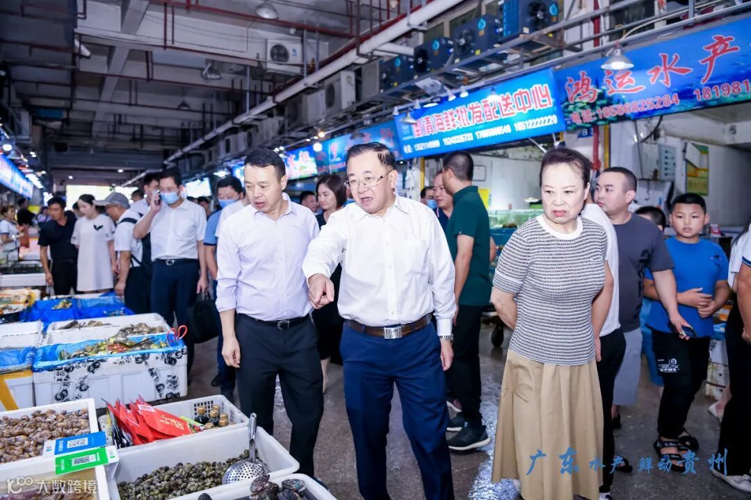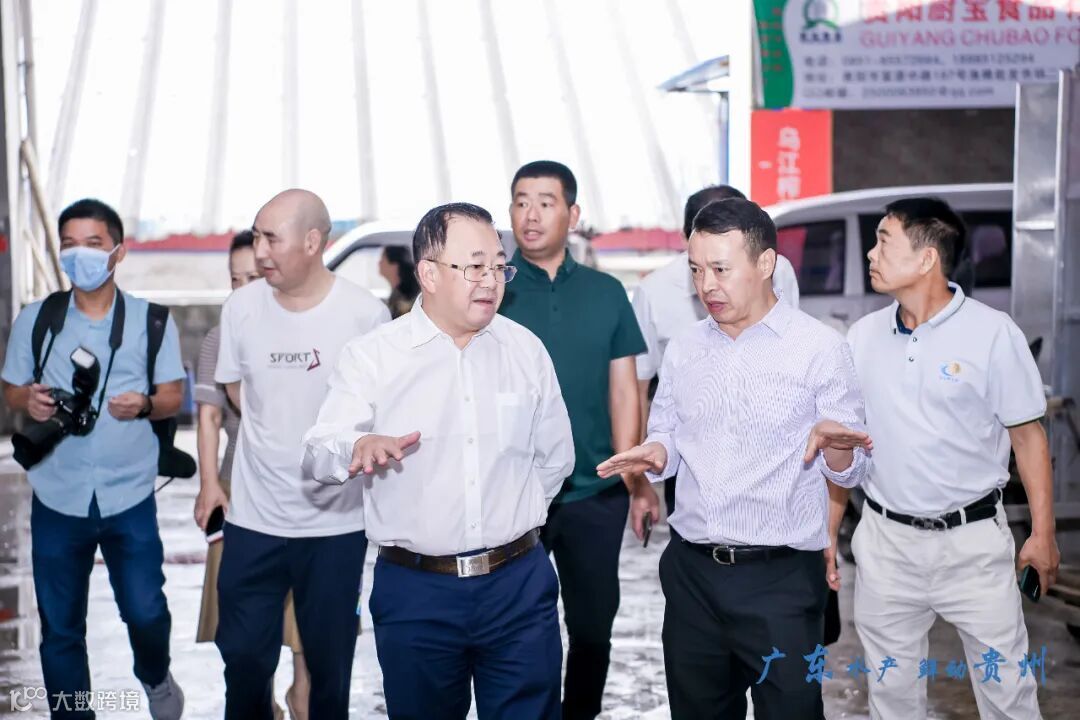 扩大内循环,提升知名度,高效拓展,精准对接,继2021年广东省名特优水产品(贵州)推介会之后,广东省农业农村厅副厅长高庆营、湛江市农业农村局、茂名市农业农村局等领导一行莅临贵州鱼樵水产品批发市场调研,广东省水产流通与加工协会、广东省渔业协会、广东省水产商会、茂名市罗非鱼协会、广东省名特优水产企业考察团走访了贵州鱼樵水产品批发市场,对市场进行了实地参观考察并进行了座谈会,与市场客商座谈交流。