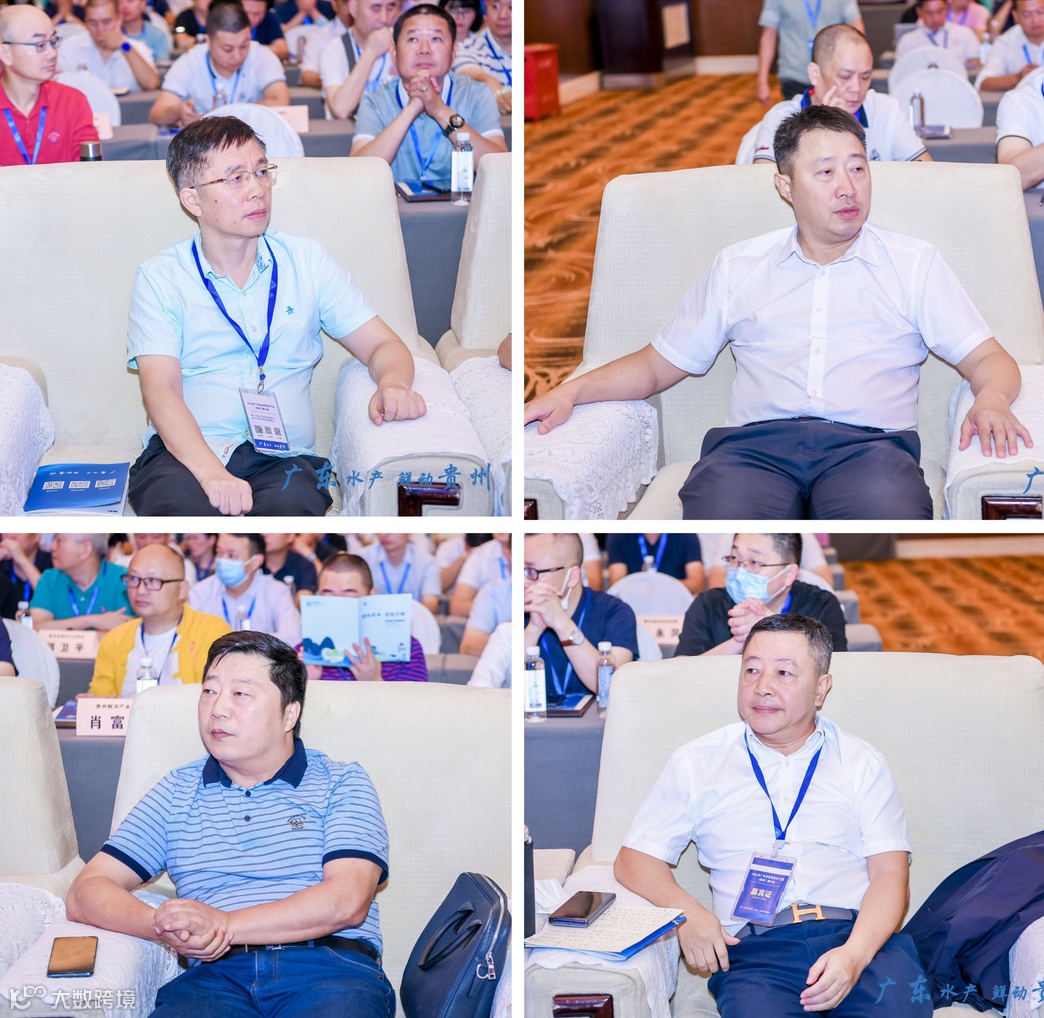 粤黔协作工作队党委书记/领队胡爱斌、广东省农业农村厅副厅长高庆营、贵州省农业农村厅副厅长张明、贵州省水利投资(集团)有限责任公司副总经理曾文平、国家虾蟹产业技术体系首席科学家/中山大学教授何建国、贵州省农业农村厅渔业渔政管理处处长罗平、粤黔协作工作队党委副书记/副领队刘楚雄、贵州省水利厅节约用水处处长马荣宇、中国水产科学研究院珠江水产研究所研究员谢骏、贵州省农业农村厅站长崔巍、广东省农业农村厅渔业发展处副处长孙启勇、贵州省渔业协会会长李彬、湛江市农业农村局副局长王拥军、茂名市农业农村局副局长黄卫清以及广东省、贵州省相关行业协会及水产(渔业)行业企业、商超高管等出席了推介会。