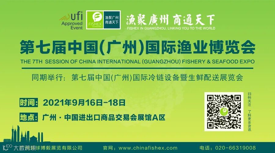 2021中国(广州)国际渔业博览会(以下简称:“广州渔博会”)由农业农村部渔业渔政管理局、广东省农业农村厅指导,广东省水产流通与加工协会、广东省渔业协会、广东省远洋渔业协会联合主办,广州环球搏毅展览公司承办。此次展会以“渔聚广州,商通天下”为主题,于9月16日-18日在中国进出口商品交易会展馆A区5.1馆举行。