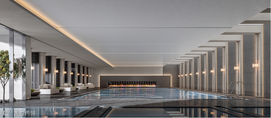 东胜·天御美学会客厅,精研圈层客户需求,营造健身生活之美。以大跨度无梁设计,重建定义结构的空间属性,实现理想中无边际泳池的最佳状态。