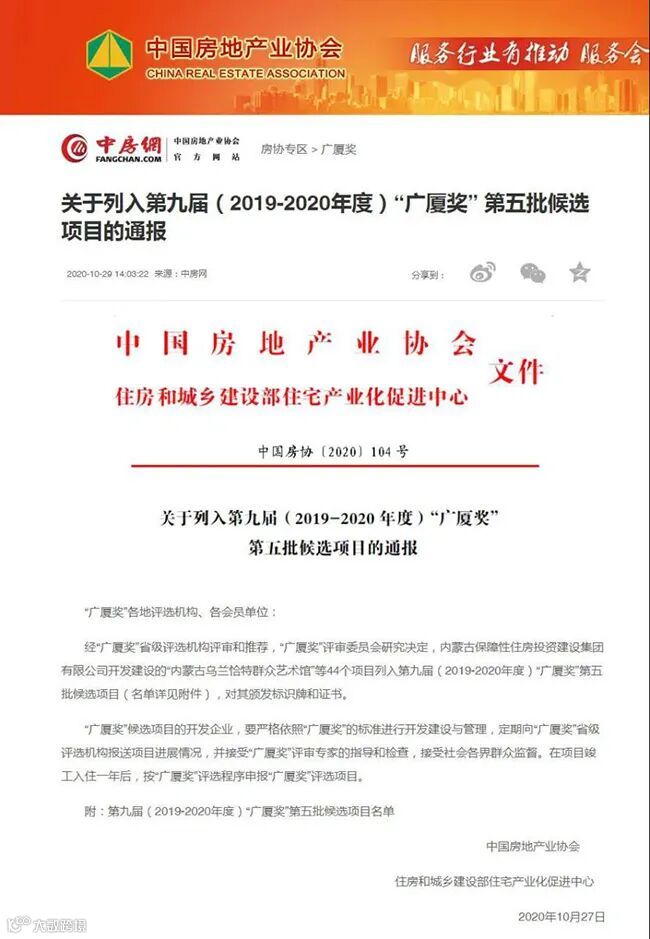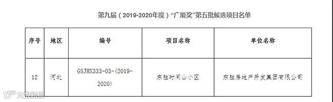2020年10月27日,中国房地产业第九届(2019-2020)“广厦奖”第五批候选项目入围名单发布,石家庄市唯一入选项目为棉五社区改造项目东胜·时间山,“东胜出品”在高质量发展的道路上步履不停,稳健前行。