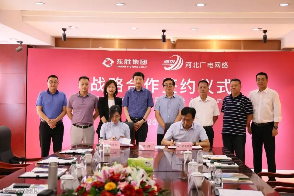 ▲东胜集团与中国铁塔河北省分公司、河北广电网络签署战略合作框架协议