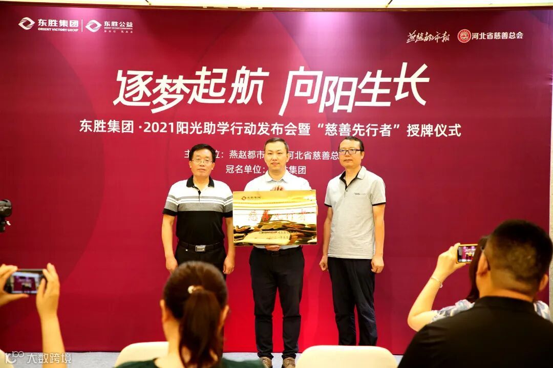 活动现场,为表彰东胜集团持续有力的公益行动与积极担当的企业公民形象,河北省慈善总会副会长兼秘书长朱云鹏为东胜集团颁发“慈善先行者”荣誉奖牌,这不仅是东胜集团勇于担当,甘于奉献企业精神的生动体现,也是对东胜集团多年来热衷公益教育事业的高度认可与肯定。