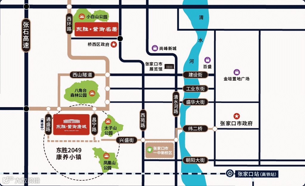 东胜·紫御康城,择址绿意盎然的森林公园旁,经由家门前的昌宁路可直达太子山公园。