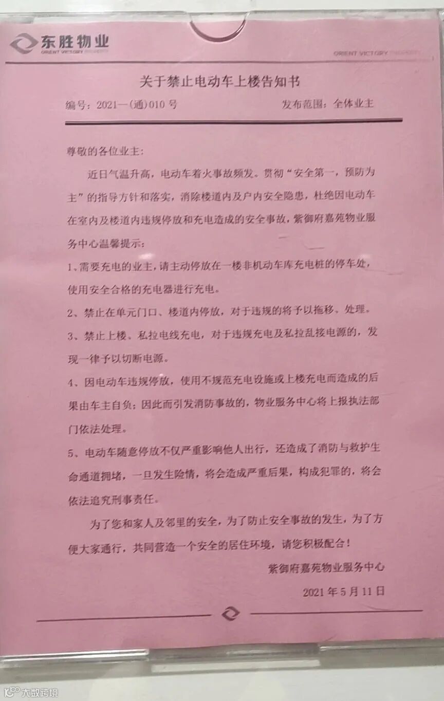 1、小区内禁止所有电动车上楼;